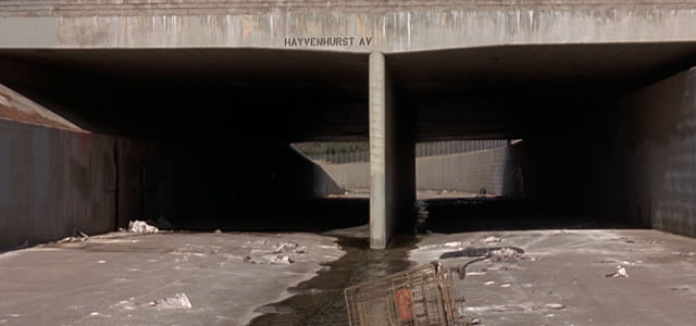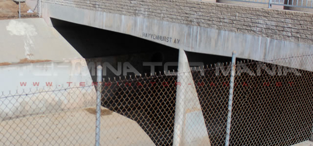 バイクで用水路に逃げたジョンを追いかけて、T-1000が橋からクレーン車ごと落ちてくるシーンで映しだされる場所。